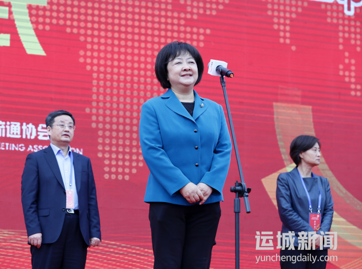 省人大常委会副主任李悦娥宣布第五届山西(运城)国际果品交易博览会开幕。