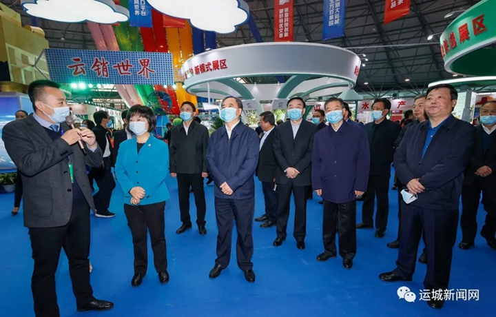 开幕式前,与会领导和嘉宾参观了果博会展馆。本届博览会由运城市人民政府与中国果品流通协会联合主办,以“运城苹果云销世界”为主题,共设县(市、区)、新品种新技术新模式、精准扶贫成果、山西药茶产品、邮政快递服务及新装备新机械等18个展区,参展企业300余家,各类产品2000余种,线上线下同步展示展销世界果业先进技术、各地特色名优果品、山西药茶和果业产业扶贫成就。