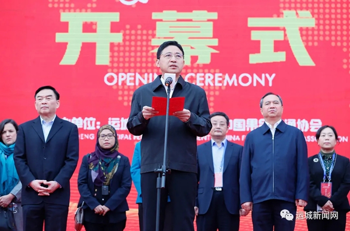 储祥好代表运城市委市政府和运城市人民向出席果博会的领导和嘉宾表示热烈欢迎。他说,近年来,运城市认真贯彻习近平总书记“山西农业的出路在于特和优”的重要指示精神,全面落实省委省政府“南果”战略,着力打造品质果业、品牌果业、诚信果业,加快推动果业高质量转型发展。目前,运城市水果面积330万亩,年产量550万吨,位居全国地级市前列;果品出口69个国家和地区,出口量38万吨,占全省的89%;果业总产值141亿元,占农民收入的31%。果业已成为运城现代农业发展的支柱产业、农民增收致富奔小康的重要支撑。2016年以来,运城市已连续举办了4届国际果品交易博览会,架起了果业走向世界的金色桥梁,打开了运城融入国际市场的高速通道。相信通过此次博览会,运城果业的影响力将进一步扩大,运城果品一定会享誉世界!
