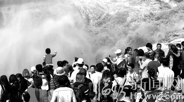 临汾新闻网讯 9月27日,众多游客在吉县黄河壶口瀑布景区游览观瀑。当日是世界旅游日,又恰逢中秋佳节,为了让人们体验旅游带来的快乐,吉县壶口景区严格执行省旅游局免收头道门票的优惠政策,吸引了周边省市众多游客观光旅游。 吕桂明 摄