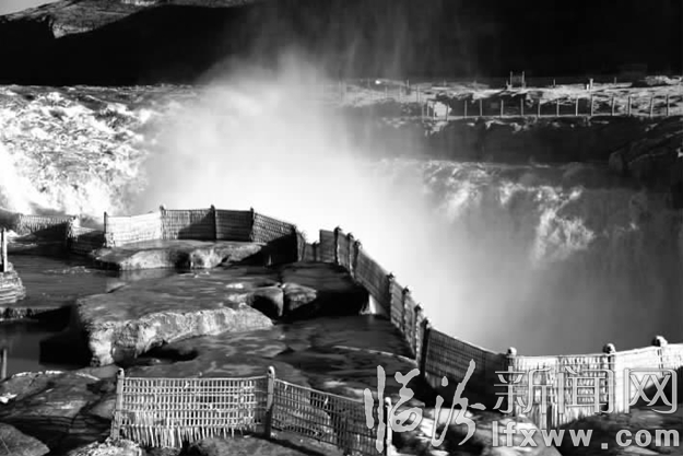 临汾新闻网讯 近日,受持续降温影响,吉县黄河壶口瀑布出现冰挂美景。依悬瀑布两岸的冰挂晶莹剔透、造型各异,有的像龙须,垂悬在岩石上;有的如无暇白玉,镶嵌在河岸旁。