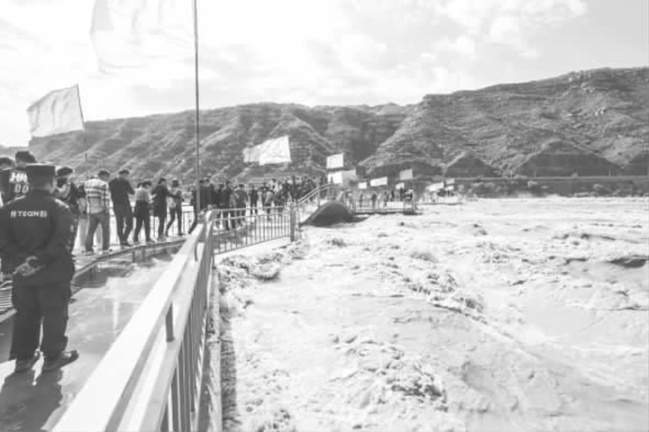 临汾新闻网讯 壶口瀑布以万马奔腾之势呼啸而下,注入十里龙槽犹如巨壶沸腾,形成浊浪滔天、水底冒烟、群龙戏浪的雄浑壮美景观。9月21日,由于水量暴涨,吉县壶口瀑布的落差减小到两米左右,吸引了大批游客前来观看。黄河浊浪沿着河岸顺流而下,使得主副瀑布连成一片,呈现数百米的阶梯式瀑布群景观。