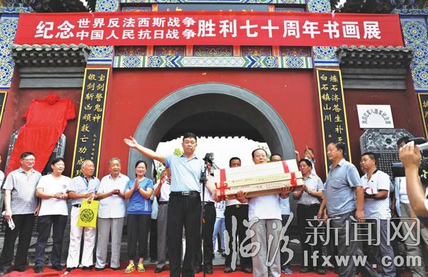 临汾新闻网讯 8月15日,洪洞红军八路军纪念馆(白石温家大院)举行了抗战歌曲演唱会和书画展览活动。通过参观红色教育基地、观看书画展览、唱响革命歌曲等形式,让大家接受红色革命传统教育,铭记历史,缅怀先烈。市老龄委金秋艺术团组织100多名演员参加了演出活动。记者 李自强 摄