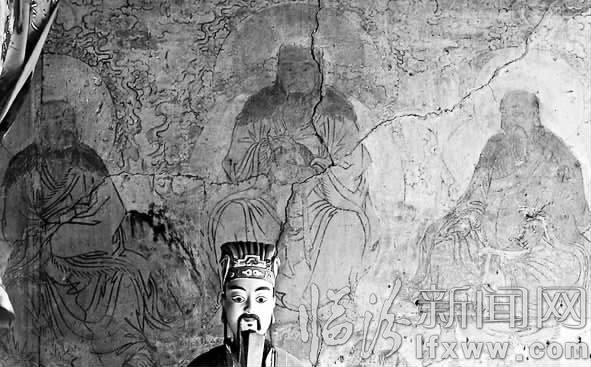 “殿内的壁画能保存下来是个奇迹,非常不容易。”对商山庙壁画非常关注的洪洞文化名人李国富老师介绍,破四旧时,人们在壁画上抹了一层泥,使得壁画保存至今。”