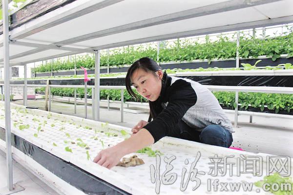 临汾新闻网讯 初冬时节,室外寒意渐浓,在洪洞县羊獬村五洲天泽园农业园的无土栽培大棚却暖流涌动,园内的工作人员正忙着在水培架上栽植生菜新苗。水培技术不但可以保证各种微量元素需求,也隔离了土壤中的细菌,其培养出来的生菜颇受市场青睐。记者 孙国芳摄