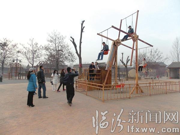 临汾新闻网讯 近日,游客正在洪洞大槐树景区民俗村荡秋千。一位来自山东潍坊的游客唐云贤说,在参观完大槐树的主要景点之后,在这里活动一下身子骨还是有好处的,一是可以增加身体热量,达到抵御寒冷的效果,二是可以还原儿时的记忆,体验老家情怀。