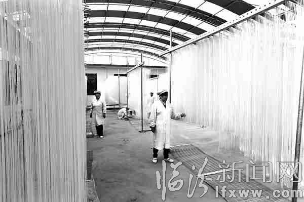 临汾新闻网讯 洪洞县众一农业发展有限公司充分利用当地农业资源,专门从事农产品种植、加工、销售及有机食品的开发。目前,该公司现有种植基地5000亩,在为广大消费者提供放心食品的同时,又带动了周边农民的增收。图为工人们正在晾晒挂面。 记者 魏华 摄