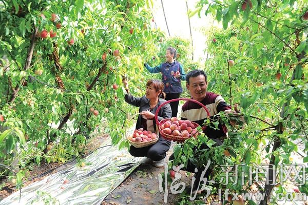 临汾新闻网讯 近年来,洪洞县大槐树镇秦壁村大力发展乡村旅游,打造集采摘、休闲、观光、娱乐于一体的高效生态农业园区。园区里,道路四通八达、各种游乐设施齐备,吸引了远近的游客来这里游玩。图为市民在采摘鲜桃。记者 李自强 摄