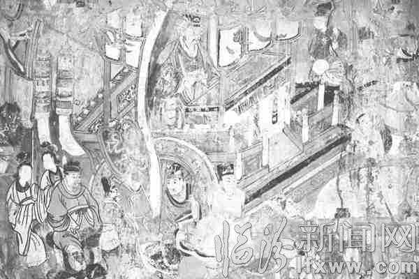 右侧壁画内容丰富,故事完整。5月初,对庙宇文化颇有研究的万安古稀老人陈保子看了壁画后说:左边修补 的内容与原作有出入,右边的是一幅规模宏大的出巡图。拉銮驾的是一象征吉祥的白象。前边有人鸣锣开道,两边护架的人都骑着骏马,骏马壮实,形象好,人物表情也很丰富。”“这座庙应该是东岳大帝黄飞虎的行宫,豪华的阵容,庞大的队伍,这不是一般的出巡。”听着老人的讲述,在场的影友和村里管理庙宇的徐金保都很惊讶。