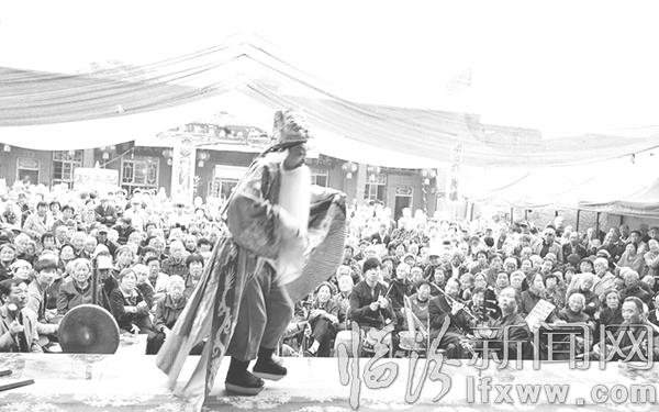 随着激昂的鼓乐声骤停,青年蒲剧团专门向村民加演的耳熟能详的《徐策跑城》登场亮相了……