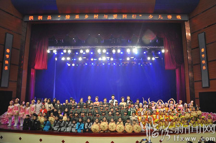 2017年1月23日在洪洞县文化中心影剧院的舞台上,一群从洪洞县农村中,小,幼及培训中心的孩子,身着华丽的服饰,参加了洪洞县首届“情系乡村与爱同行”少儿春晚赢得了现场观众的一阵阵热烈掌声。