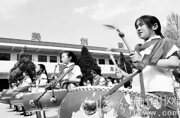 临汾新闻网讯 威风锣鼓据传起源尧、舜时期,距今已有四千多年的历史。为将这一古老传统艺术传承给后代,今年三月,洪洞威风锣鼓艺术研究会,经多方努力,在洪洞县白石小学组建了80人的少儿威风锣鼓队。