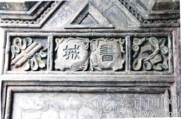 谁园核心建筑藏书楼院,占地两亩左右,近正方形,坐北向南。南面三间客厅,前出披水,系谁园主人款客之所。北为主房,筑砖窑洞五孔,前出披水,为谁园主人栖息之所。左右风火墙作为影壁,壁心宋锦素面,上下雕以石榴、佛手、琴、棋、书、画图案,左镌书城,右刻酒国。书法坚劲苍然,系谁园主人手迹。
