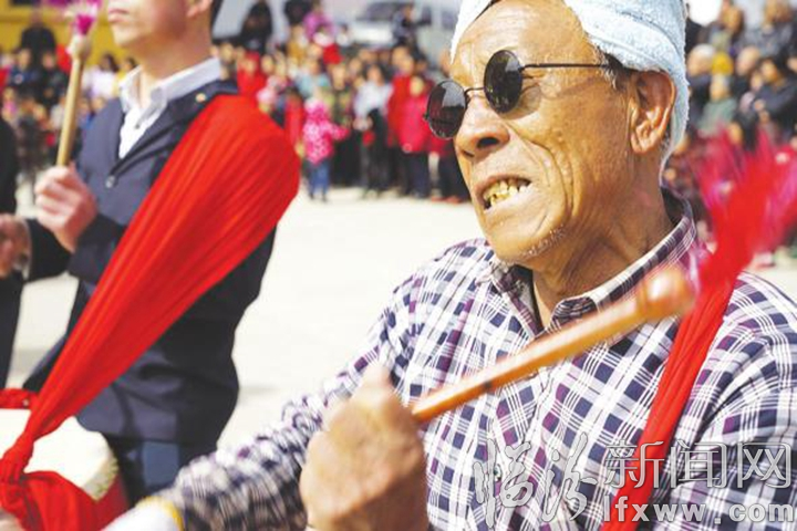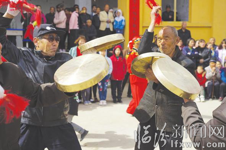 楼村锣鼓鼓调悠扬、缓慢、厚重。乱撕麻”打到高潮时,楼村人是跳着打,这让观众大开眼界。旱船队的表演形式欢快活泼,塑造出水面行船的情景。