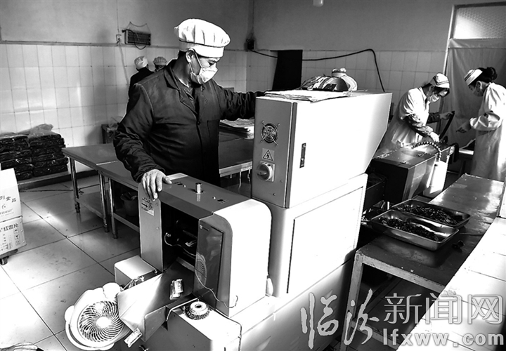 临汾新闻网讯 1月23日,洪洞县黄土地天然果蔬食品厂的工作人员正在加紧生产大槐树牌“山西醋糕”“沙棘果糕”等红枣果糕系列产品,以备春节货源。 该公司生产的“大槐树”牌食品曾获得临汾市首届农业新技术新产品展销会名牌产品奖、第二届和第三届中国山西特色农产品交易博览会畅销产品奖,其产品进驻五台山、平遥古城、云冈石窟后深受游客欢迎。