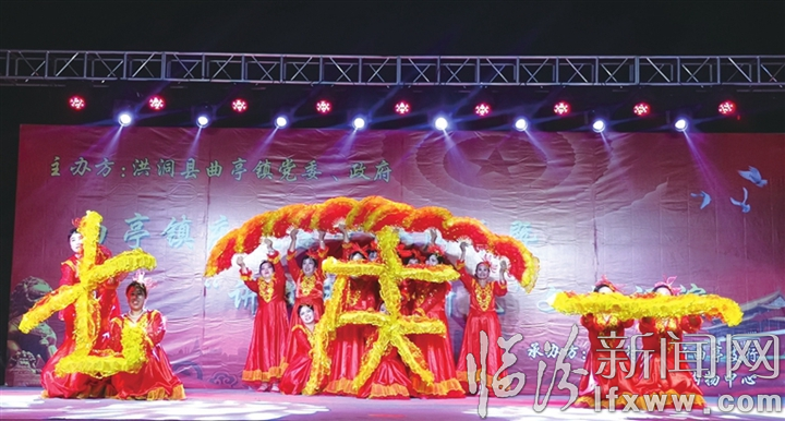 临汾新闻网讯 6月28日,洪洞县曲亭镇开展了庆祝建党98周年暨“讲文明、树新风”文艺汇演活动。乡亲们通过洪洞干板、合唱、歌舞等形式,唱响时代赞歌,弘扬文明新风。图为该镇董庄村村民在表演广场舞《歌唱祖国》。