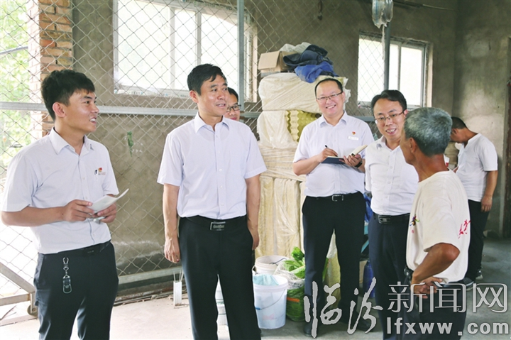 临汾新闻网讯 省联社临汾办事处党组书记、主任李建学(左二)走访洪洞农商行甘亭支行辖区客户,就“百村示范、千村推进”全面授信工作进行调研督导。(李吉鹏)