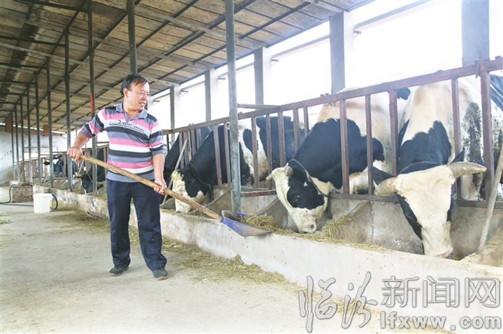 临汾新闻网讯 今年以来,洪洞农商行发挥金融扶贫先锋和“三农”主力军作用,扶持贫困户在农村进行规模养殖,多户联合共同发展肉牛、奶牛混合养殖。图为扶持的贫困户在精心喂养奶牛。(李吉鹏)