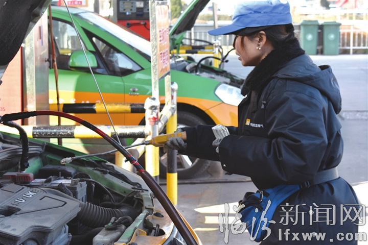临汾新闻网讯 12月16日,洪洞县一加气站内,工作人员正给一辆汽车加气,为了确保安全,加气站工作人员一直用仪器进行安全监测,以确保群众生命财产安全。