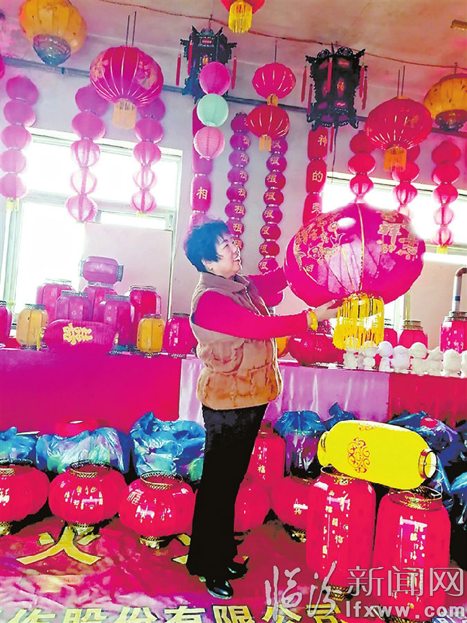搭好模子、套上红布、钉实笼口、绑紧流苏……旺季将至,杜金英手头的活儿多了起来。在她的巧手之下,红灯笼很快堆满了屋子。她高兴地说:“‘基地+农户’模式真好,在家就把钱赚了,每个月稳定收入1500元,赶集时想买什么买什么,小日子越过越红火。”