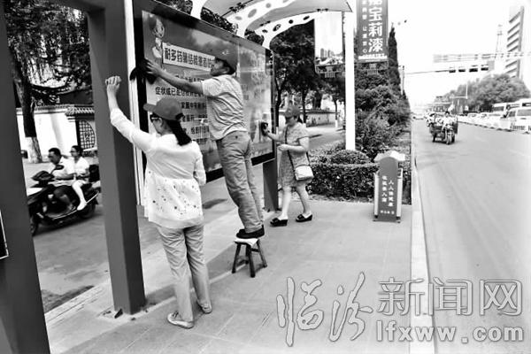 临汾新闻网讯 7月8日,侯马市组织该市文明单位志愿者队伍,走上街头,清扫、擦洗主要路段公交站牌,向市民宣传倡导文明、和谐的行为准则,为创建全国文明城市增光添彩。张留高 摄