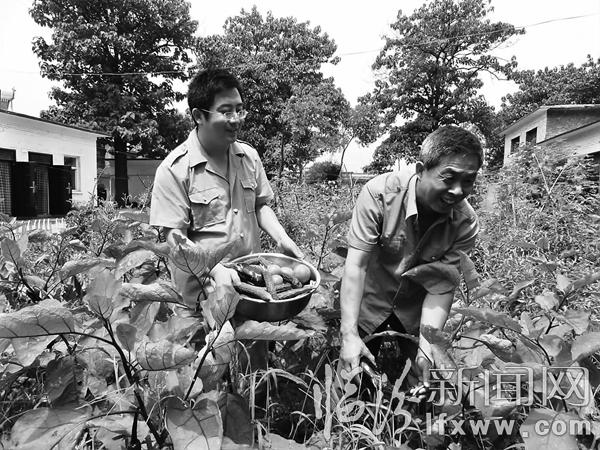 临汾新闻网讯 侯马电务段把关心一线职工生活当作大事来抓,大力推进民生“八小工程”建设,积极鼓励职工利用业余时间开辟空地种植蔬菜,既享受到了种菜的乐趣,又吃到了绿色健康的时令鲜蔬。图为7月6日,该段中修车间职工正在小菜园内兴致勃勃地采摘黄瓜、西红柿、茄子等蔬菜。 白鹏摄