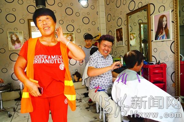 “从来没有理得这么漂亮过!”抚摸着刚刚理好的发型,环卫工人甘月梅大姐高兴地说,今天是她几十年来理发最满意的一个发型。安大妈带着聋哑儿子来理发,看着变帅了儿子直夸:理得真好!环卫工人张桂珍激动地说,环卫工平时很辛苦,能得到社会的尊重非常高兴。