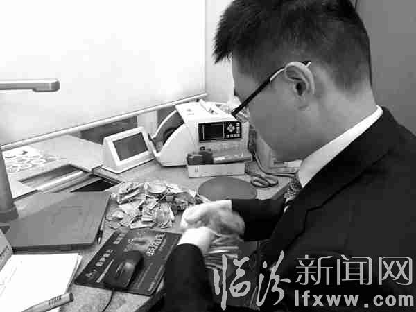 据了解,客户柴先生的残币因受潮发霉损坏程度严重,辗转几家银行未能兑换成功。当日上午抱着试一试的心态来到了中行侯马支行营业部。恰值周末,该网点事中和柜员放弃午饭时间,加班加点帮助客户按照残损程度进行分拣。针对客户这些残损严重的钞票,柜员耐心地向客户讲解兑换标准和爱护人民币知识。经过分拣整理出因发霉断裂粘连在一起的208张纸币,共计429元兑换给客户。 高文华 摄影报道