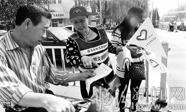 临汾新闻网讯 4月30日是“全国交通安全反思日”,侯马市青年志愿者组成文明交通志愿服务队,活跃在该市市区多处路口,在民警的协助下疏导交通,劝止不文明行为,并向行人发放“珍爱生命、守法出行”宣传单。呼吁广大市民关注交通安全,反思以往的行路驾车陋习,倡导文明交通、安全出行。(冯文芳)