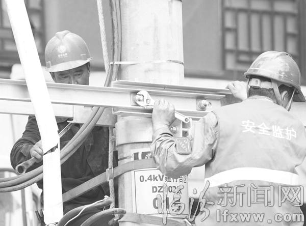 临汾新闻网讯 近日,侯马供电支公司的技术人员正在对侯马程王路875线进行抢修。
