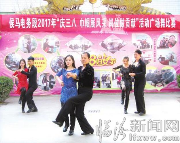临汾新闻网讯 近日,侯马电务段工会举办主题为“巾帼展风采、岗位做贡献”的广场舞比赛暨文艺汇演活动,以活跃女职工文化生活,培养女职工团结协作意识,激发女职工爱岗敬业的工作热情。图为女职工们正在兴致勃勃地表演交谊舞。
