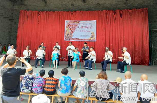 临汾新闻网讯 七一前夕(6月30日午),中华艺术厅二胡成年班学员和新田艺术团30余名文艺爱好者,自发免费送戏下乡,为侯马市最大村庄之一的大南庄村党支部,村民表演了二胡独奏,齐奏,小品,独唱,歌舞等节目。丝弦和鸣,载歌载舞纪念伟大的共产党成立96周年,为农村广大党员,农民奉献了一道丰富多彩的文化大餐。(袁世俊)