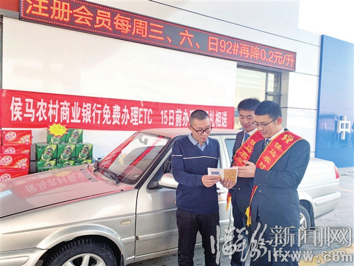 临汾新闻网讯 为了向广大客户提供优质、高效、全面的综合金融服务,连日来,侯马农商银行通过精心组织强宣传,精准对接强保障,全力推广ETC业务。图为员工在向客户介绍ETC功能。 (李庭)