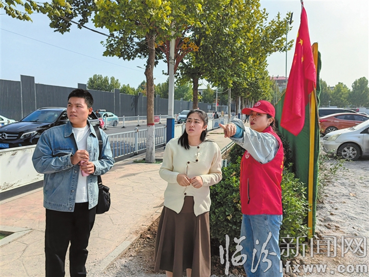 临汾新闻网讯 中秋、国庆期间,侯马西站客流量剧增,为确保车站良好秩序,侯马市文明实践和网络服务中心组织发动志愿者,义务协助车站工作人员维持秩序。图为志愿者在为旅客答疑解惑。张跟慧 秦明忠 摄