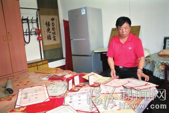 善于发明创造的任光福收获了众多获奖证书。