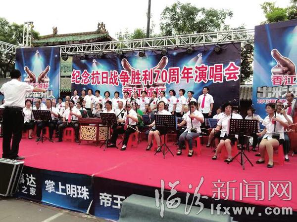 临汾新闻网讯 近日,霍州市老年大学音乐班在该市州署广场举行了一场别开生面的演唱会,纪念抗日战争胜利70周年。来自该市老年大学音乐班的学员们齐聚一堂,用歌声表达对革命烈士的崇敬之情。松花江上》《抗日将士出征歌》《大刀进行曲》一首首经典的抗战歌曲,引起了观众的阵阵共鸣,表达了老同志对党和祖国的热爱之情,祝福祖国繁荣富强。