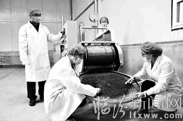 临汾新闻网讯 古称“长寿果”的文冠果,又名木瓜、文官果,其树叶中蛋白质的含量为19.8%,有16种氨基酸、黄酮类和香豆素类化合物,长期饮用可保健养生。霍州市青年张华创立文冠果科技公司,在全国率先生产出文冠果茶。公司积极发展公司+农户的模式,引领更多的农民共同致富,目前已有500亩文冠果标准种植基地,图为果茶生产车间内工作人员正在对茶叶进行分拣作业。 (晁琰)
