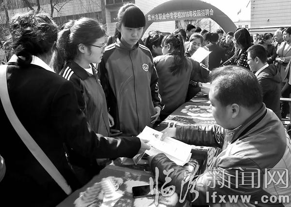 临汾新闻网讯 霍州市职业中专学校近日举行了第11届校园招聘会,共有339名学生与北京同仁医院、太原足林语岸保健有限公司等16家企业签订了实习协议。记者 范韶华 摄