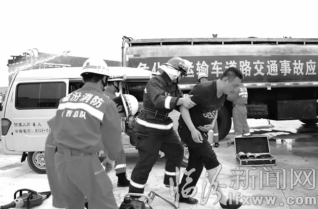 临汾新闻网讯 6月23日上午,霍州市公安局交警大队联合交通运输局、安监局、环保局、消防大队、120指挥中心等单位在客运站组织开展了危化品运输车辆交通事故应急救援演练。