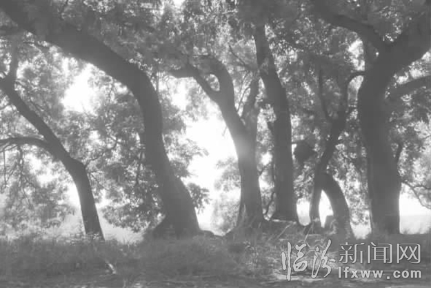 记者仔细观察,十棵国槐树干粗壮,枝叶茂盛,相拥共生,令人折服。记者王隰斌