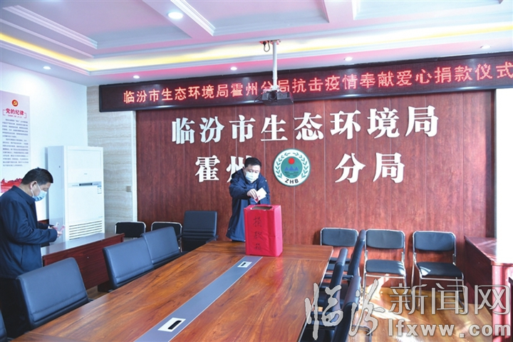 临汾新闻网讯 2月10日,市生态环境局霍州分局组织开展了“抗击疫情,奉献爱心”捐款活动,该分局全体干部职工通过现场捐款、微信募捐等方式踊跃捐助,所筹集的8888.8元捐款已全部交于霍州市红十字会用于武汉疫情防控。图为捐款现场。