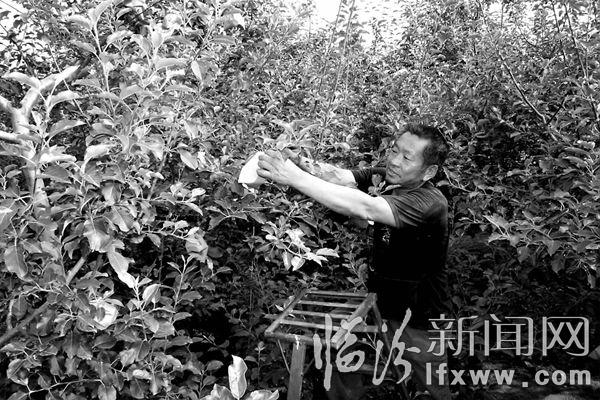 临汾新闻网讯 为苹果进行套袋是生产高档无公害苹果确保果面光洁美观色泽鲜艳的技术之一时下正是苹果套袋的关键时期吉县吉昌镇上东村的果农们抢时间、 抓节令为苹果套袋, 使果品上档次、 增产量, 提高市场价和竞争力。 记者 范韶华 摄
