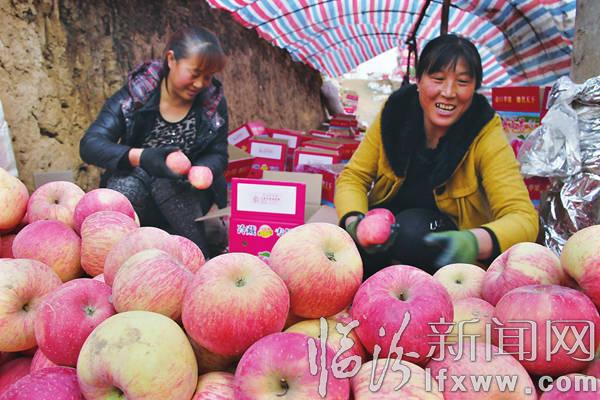 临汾新闻网讯 近日,吉县吉昌镇于里村果农正在给自家苹果装箱。吉县因具有苹果生产的土壤、气候、光照先天优势,所生产出的苹果皮薄质脆、果型端庄、色泽鲜艳,非常受果商青睐。闫海斌摄