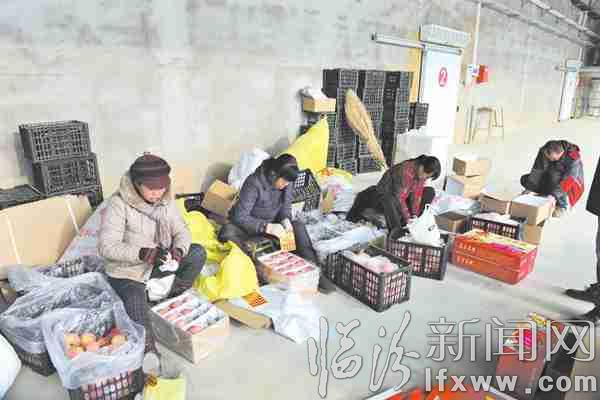 临汾新闻网讯 1月20日,在吉县文成乡亚民苹果冷藏库,工人们正忙着将贮存的苹果进行分级、装箱,这些苹果将被运往广州、太原等一些大城市出售。苹果冷藏库让吉县苹果形成了季产年销的局面,大大增加了果业收入。 党源 摄