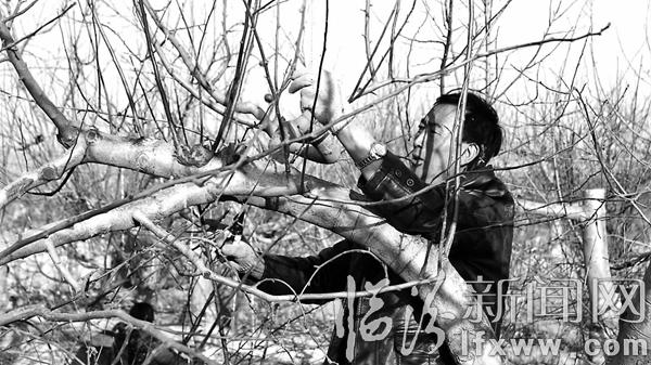 临汾新闻网讯 入冬以来,果树进入休眠期,在吉县文城乡午生村,果农们在果园里忙着进行果树冬剪,该村还组织了一个技术过硬的修剪团队,给一些缺劳力、没技术的户进行修剪。图为果农刘忠辰正在修剪。