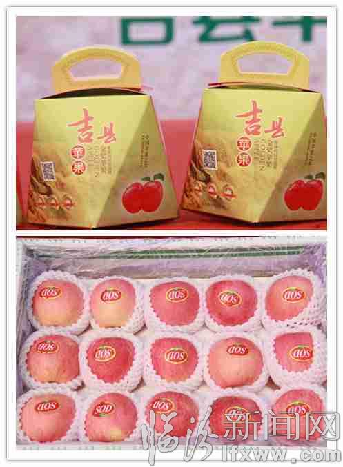 据介绍,吉县壶口苹果曾荣获首届全国农博会苹果类唯一金奖、第三届中国农博会“名牌产品”称号、北京果品鉴评会头名金奖和国家农业部绿色食品认证、无公害农产品产地认证、中国食品市场名优品牌认证、国家级农业标准化示范基地产品等国家级12项认证、22项奖项,被指定为中南海、人民大会堂招待特供果品。 2009年9月,吉县被中国果蔬产业品牌论坛组委会命名为“中国苹果之乡”,荣获“中华名果”称号;2011年12月,吉县被国家农业部考察命名为“全国农业 (苹果)标准化示范县”。吉县壶口苹果畅销国内各大中城市,并出口东南亚、俄罗斯等地区和国家。目前,全县苹果种植面积已发展到了 28万亩,占总耕地面积的84.8%, 年产量达16万吨,产值4亿元,果农人均果品收入6000元,占农民人均收入的82.3%以上。因而,苹果已成为吉县农业经济的主导产业,成为全县农民的富民产业。