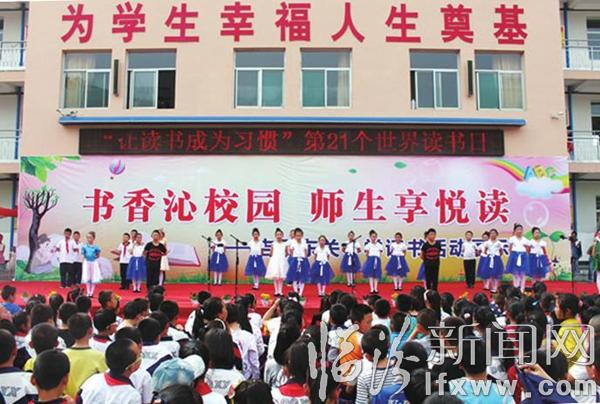 临汾新闻网讯 世界读书日当天,吉县东关小学师生在操场举行“师生享悦读”展示活动。近年来,晨诵、午读、暮省已成为该校阅读教学的三部曲。(张立忠 刘永娟)