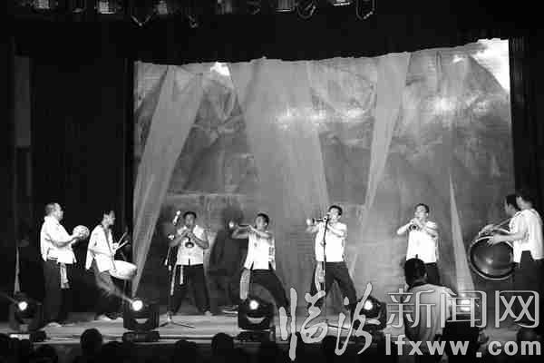 临汾新闻网讯 8月11日,吉县中垛乡举办了“精彩新中垛”群众文艺晚会,金麒麟》《狸猫换太子》《三进士》《朱元璋》等传统社戏表演,赢得了观众的阵阵掌声。晚会上还表彰了全国道德模范提名奖获得者贺印娣、10个“诚实守信中垛人”、10户“文明和谐好家庭”。图为该乡柳沟村唢呐表演《迎亲》。