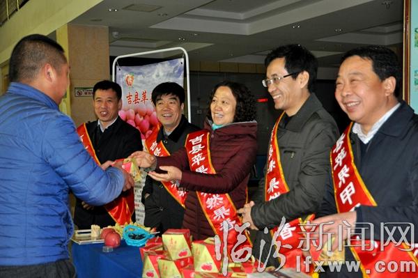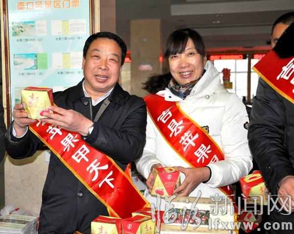 临汾新闻网讯 12月25日,吉县壶口景区工作人员给游客免费送吉县苹果。当日,为了进一步推动壶口景区发展和吉县苹果的知名度,活跃冬季旅游氛围,吸引更多的游客欣赏“冰瀑玉壶”和“大河上下顿失滔滔”的奇特景观,吉县壶口景区联合吉县果业中心隆重推出“玉壶观瀑 金果祝福”为期一个月的优惠活动,让广大游客在享受门票半价的同时,免费品尝吉县苹果,更有效的发挥旅游带动地方经济发展和脱贫致富的作用。(吕桂明)