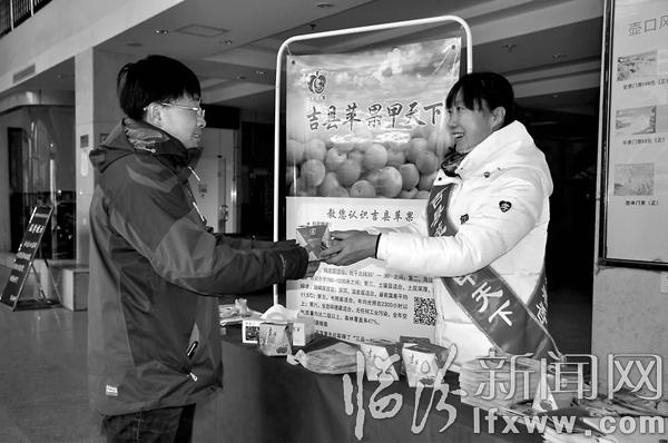 临汾新闻网讯 12月25日,吉县壶口景区工作人员给游客免费送吉县苹果。当日,为了进一步推动壶口景区发展和吉县苹果的知名度,壶口瀑布风景区推出“玉壶观瀑·金果祝福”活动,让广大游客在享受门票半价的同时,免费品尝吉县苹果,更有效地发挥旅游带动地方经济发展和脱贫致富的作用。 (吕桂明)